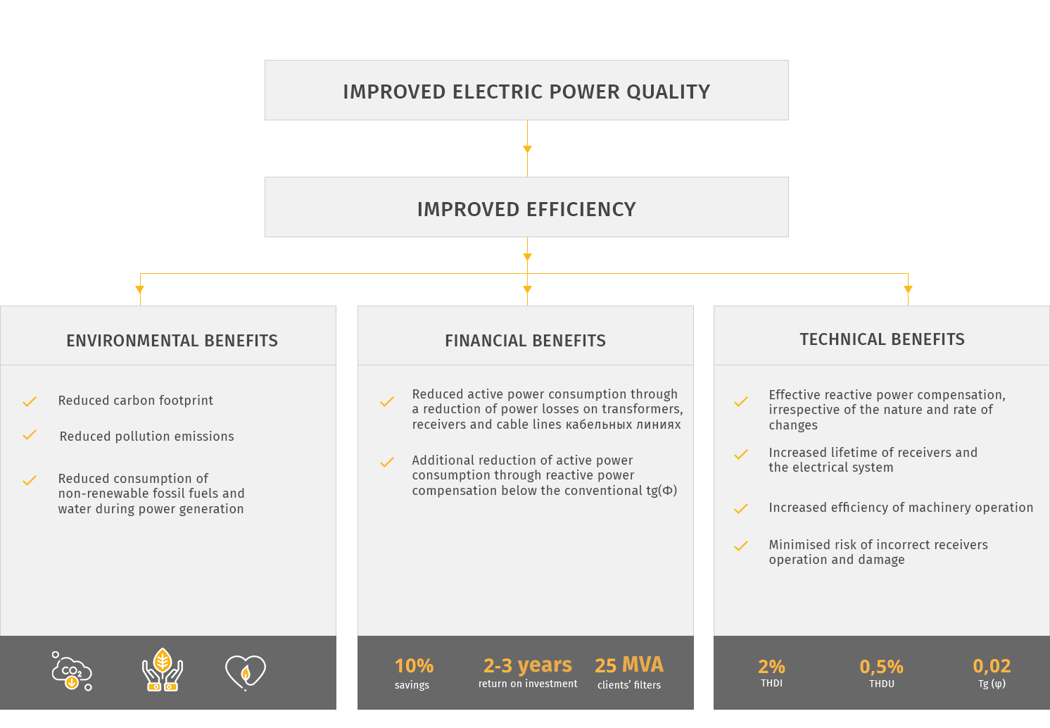 For many years we have been specializing in electric power quality and energy efficiency. Based on the experience we gained during multiple installations of filters and compensators, we can guarantee the effectiveness of equipment that we offer.